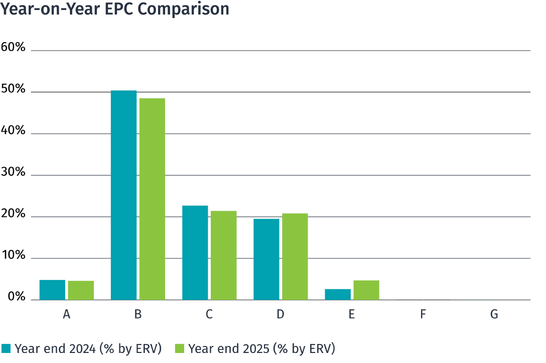 Ahead of the change in the Minimum Energy Efficiency Standards 2023 regulations, the Company is taking a proactive approach to the procurement of Energy Performance Certificate (“EPC”) reassessments across the portfolio, while maintaining quarterly reviews of EPC schedules, identifying opportunities to improve energy efficiency and working closely with tenants who occupy under full repairing and insuring leases.